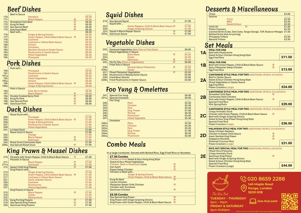 Welcome to The Rice Hut, a charming gem nestled in London, offering delectable Chinese cuisine. Located at 140 Maple Rd, The Rice Hut has garnered a loyal following for its standout dishes and exceptional service. Customers rave about the crispy duck with pancakes, a must-try that comes in generous portions. The owner’s personal touch, recognizing returning patrons and fostering a warm atmosphere, creates an inviting dining experience.